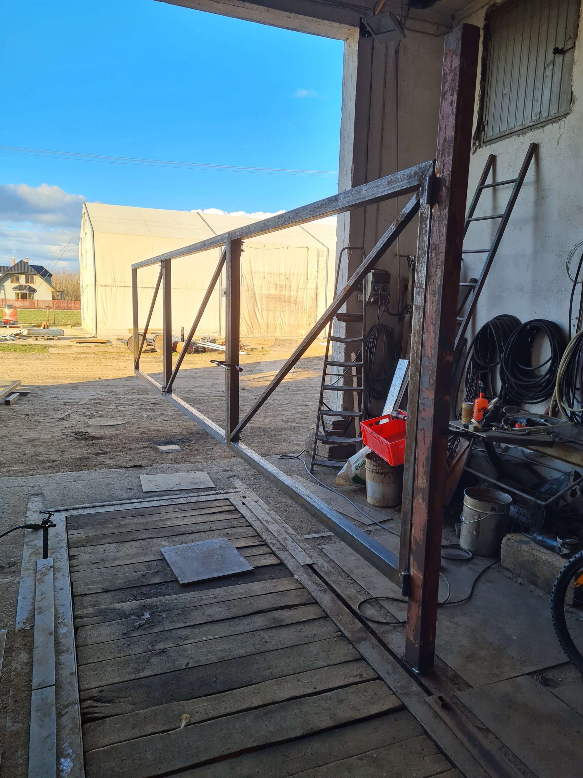 Największym dowodem naszego partnerskiego i kreatywnego podejścia były autorskie konstrukcje stalowe, zaprojektowane od zera. Stworzyliśmy specjalistyczną wiatę rozładunkową, której projekt powstał na kartce papieru, by spełnić rygorystyczne wymogi audytorów. Perłą w koronie stała się jednak 18-metrowa, składana brama przesuwna – potężna konstrukcja osadzona na zaledwie dwóch słupach i czterech tonach betonu, której projekt i wykonanie to owoc międzypokoleniowej współpracy z doświadczonym mistrzem ślusarstwa.